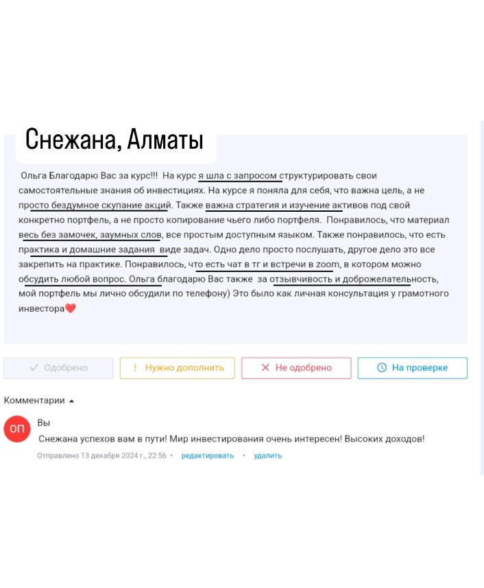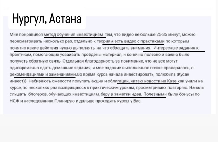 Свои первые акции купила в декабре 2014 года, когда не было курсов по инвестициям в РК, учились сами на личном опыте. Пассивно инвестировать начала 5 лет назад и теперь помогаю другим не терять время и быстрее получать желаемые капиталы.